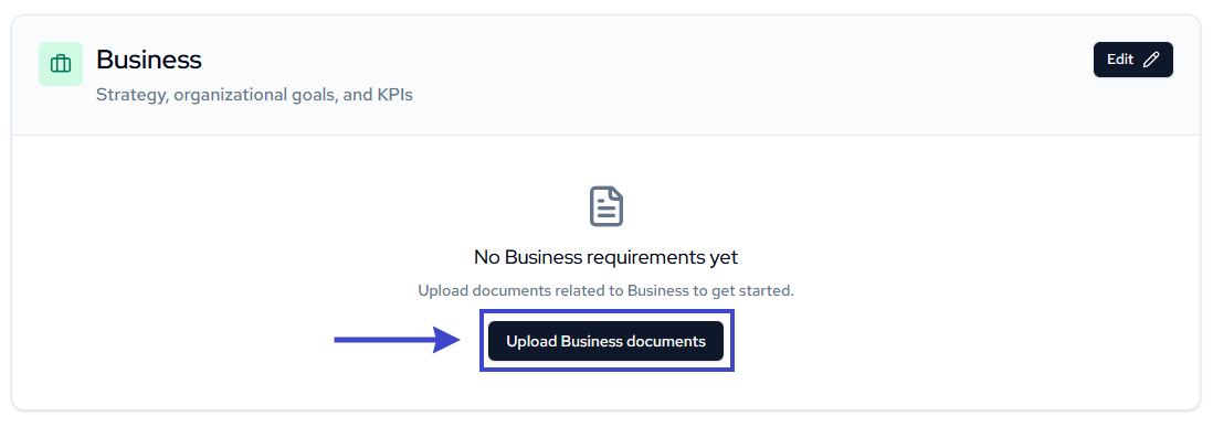 Add business and technical context to your workspace through manual text entries or document uploads.