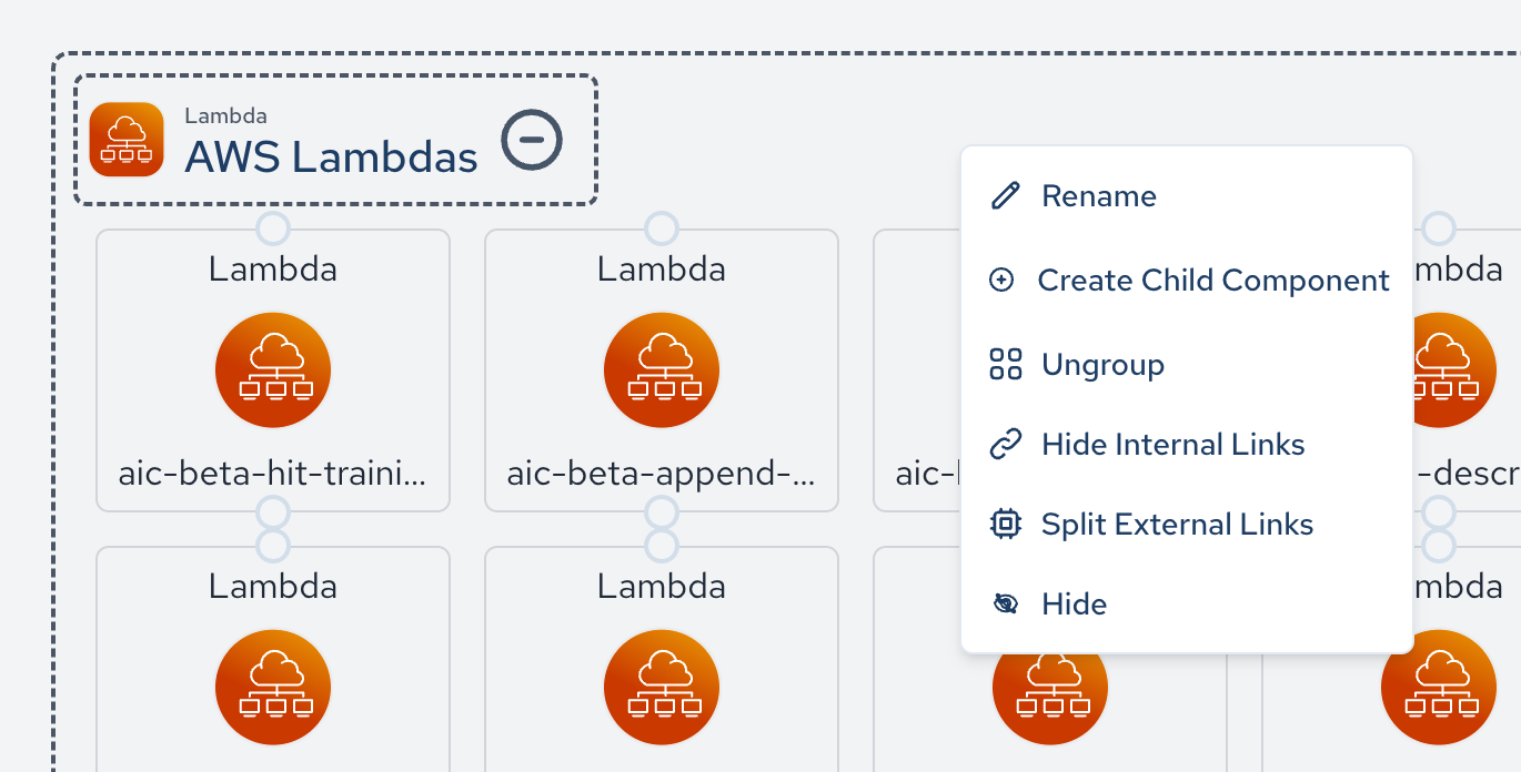 Right click in the canvas within the group you would like to place your component in, and select Create Child Component to add a custom component to your infrastructure.