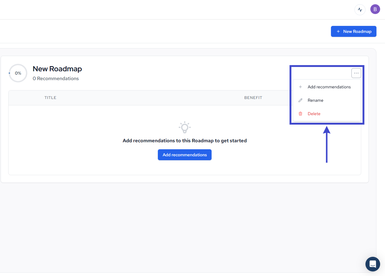- Add Recommendations: Add bookmarked recommendations to your roadmap
