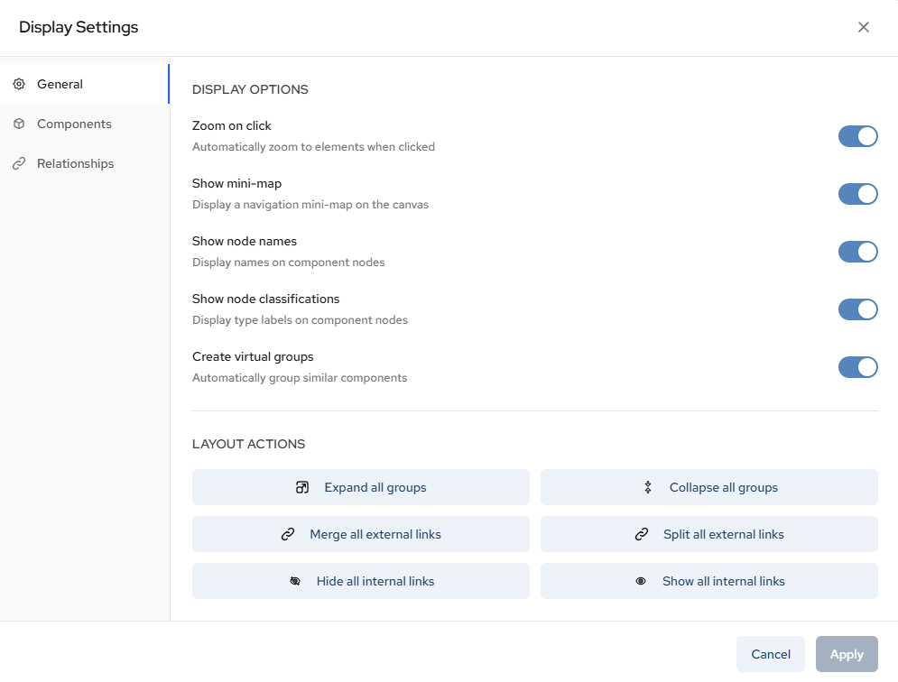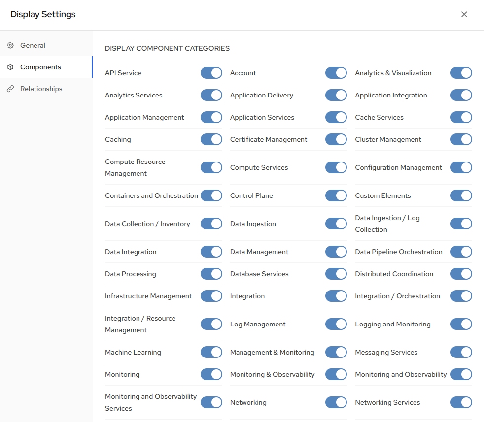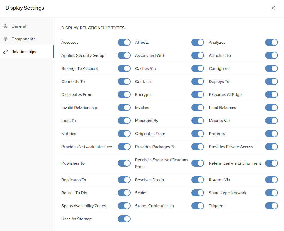 In the Relationships tab, you can manage which connection types are displayed between components.