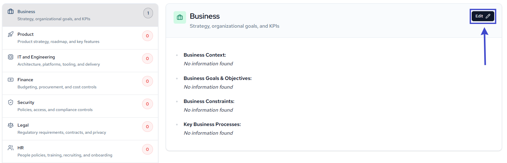 Click into any category to edit its details.