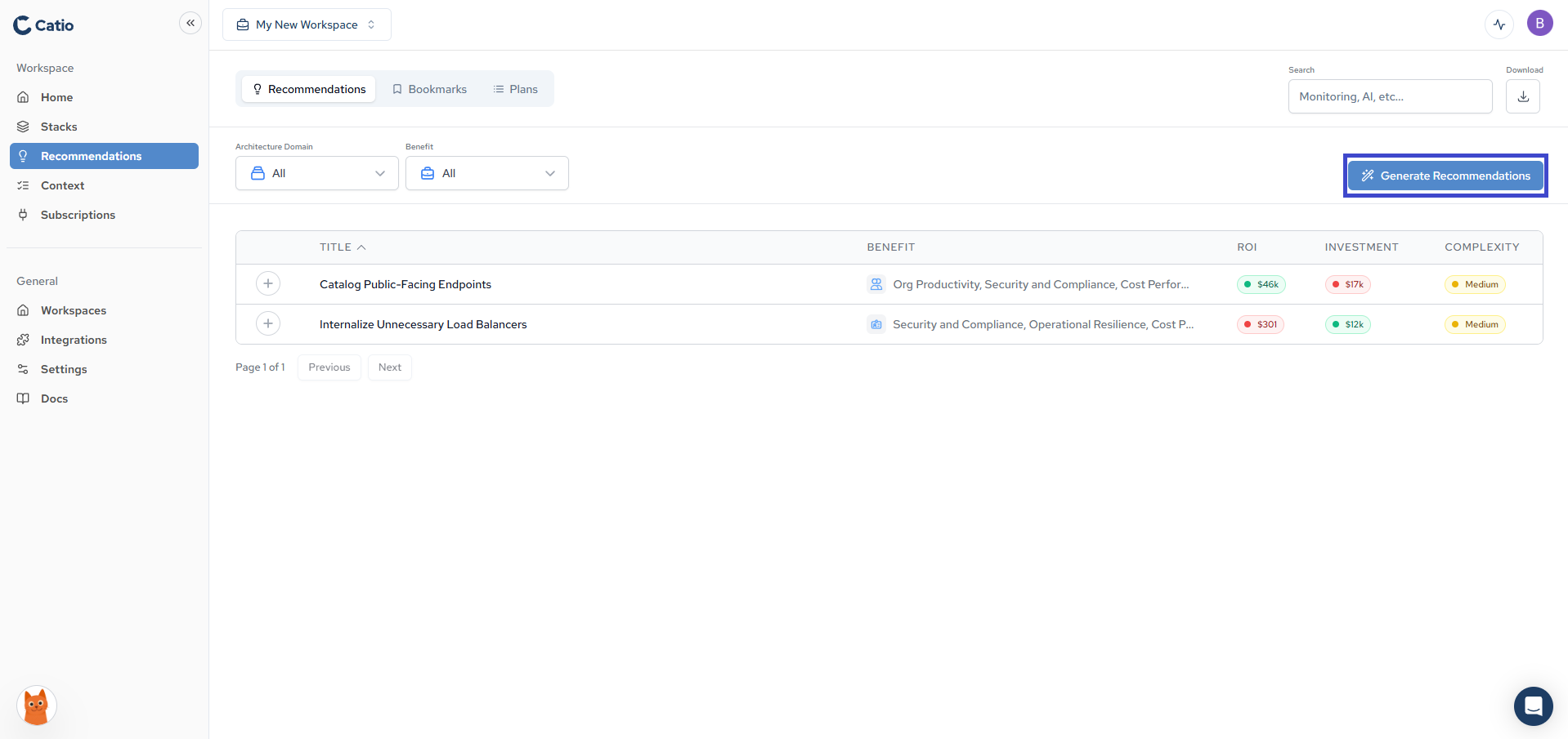 Archie will analyze your environment and generate targeted recommendations. Once complete, they will appear in the Recommendations tab where you can review, filter, and organize them. For a full walkthrough of what to do next, see How to Best Utilize Recommendations.