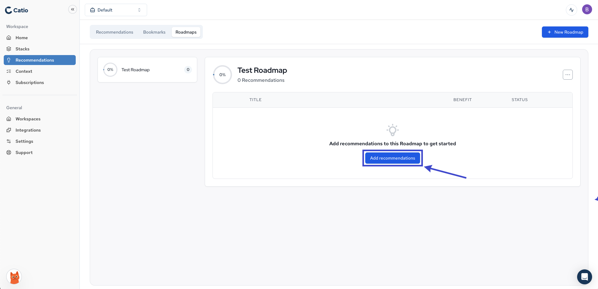 Adding Recommendations to a Roadmap