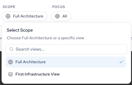 When you click the Scope selector, you can choose between Full Architecture or a specific view you have created in Stacks.