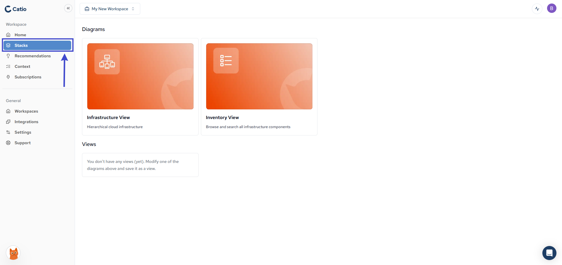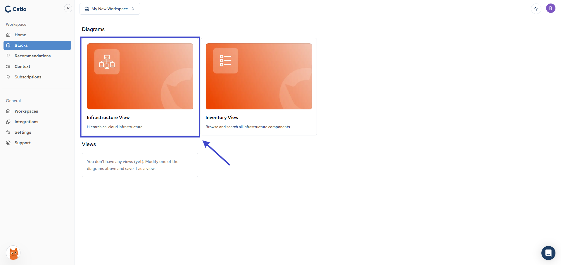 To get started, click on a component, and Catio will automatically focus your view to that region component.