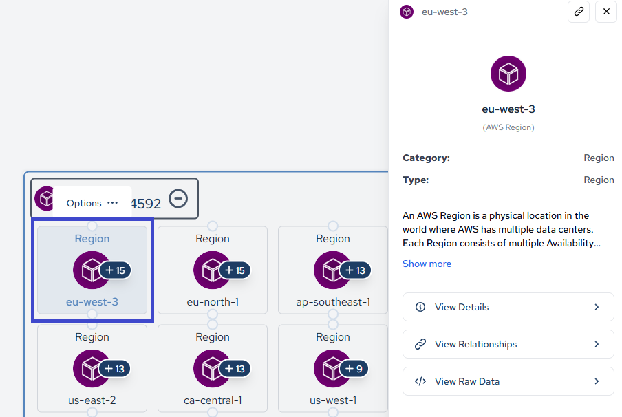 View Details will give you more information on the properties of that specific region component. This is more so to give you context on what the resource is, its tags, and other metadata.