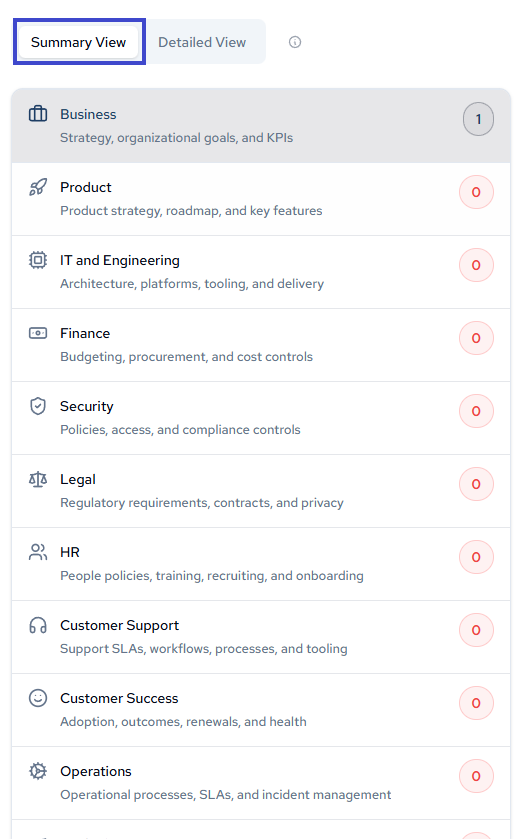 Navigate to the Summary section, scroll to your desired category, and click to view its context entries.